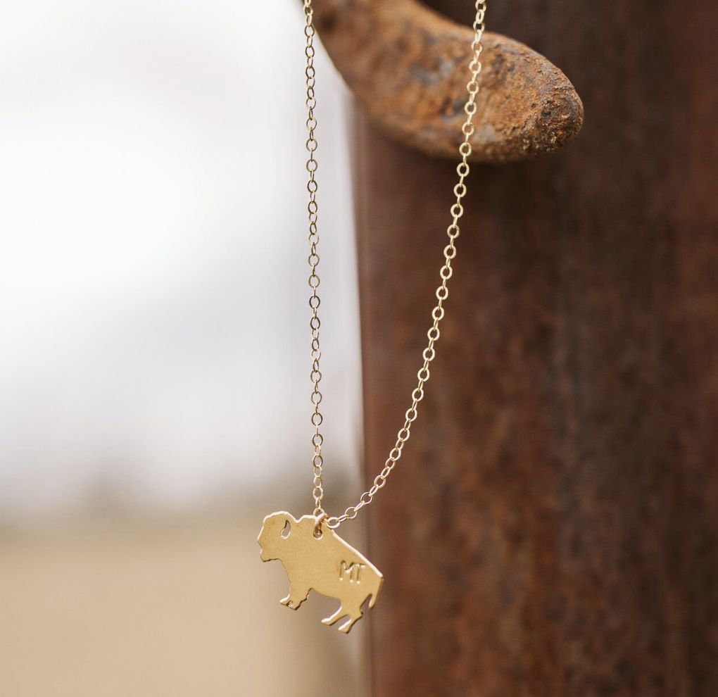 Home on the range! This little buffalo is the perfect necklace to remind you of your favorite state.